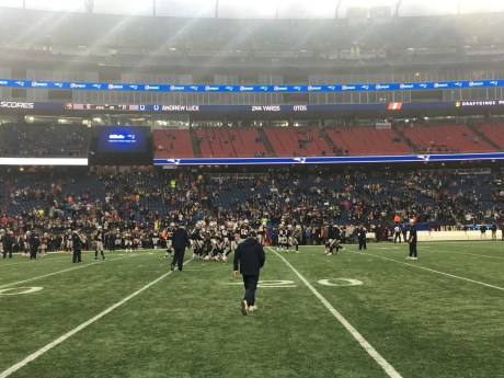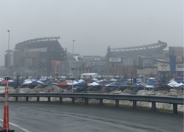 It was a beautiful monsoon-like day for a football game so naturally I had to stop at Marshalls on the way to Foxboro to pick up some waterproof pants like I was going gator hunting.