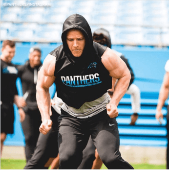 Curls for girls, baby!! It would seem like Christian took our description of him as a “receiving back” pretty personally. The guy looks like he wants to prove he can run through a literal brick wall like he’s Jerome Bettis or something. Borrowed a few workouts from the ole Mark Wahlberg movie Pain and Gain to do just that.