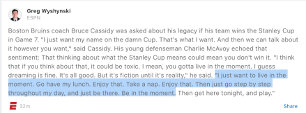 PS – Does Charlie McAvoy need a side hustle coming up with t-shirt ideas this summer because this is also an A+ quote from the young defenseman.