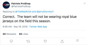 Our Inside source confirms with that the Patriots will be wearing their 90s royal blue jerseys vs the Cowboys on November 24th. First time they will wear those jerseys in 20 years. pic.twitter.com/lxxzlSmQ7Y