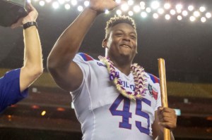 Jaylon Ferguson became the NCAA’s ALL-TIME LEADER in sacks this past season. The 6’5 262 lbs defensive end wracked 45 Involuntary Knee-Downs over the past four years, ending his career with 17.5 this past season (in 13 games). The reason you may have not heard of Ferguson, or of the record being set, is that he plays at non-powerhouse Louisiana Tech. The Bulldog program has most famously produced Super Bowl winner and HOF QB Terry Bradshaw, but has also turned out a solid smattering of talent throughout its years including HOF Offensive Tackle Willie Roaf. That said they obviously aren’t a name brand school and play in a small conference so when of their D-Ends goes off like this, it gets overlooked and chalked up to playing against lesser competition, etc.