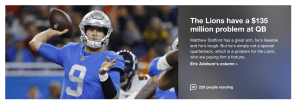 Context is needed for the Mayfield outlier and it should be noted that the winds were howling and it was raining the entire game last Sunday.