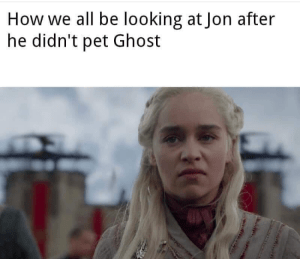 Jon’s goodbye (or lack thereof) to Ghost was one of the sadder scenes of all time. This dog lost a goddamn ear fighting your war, Jon. Ghost was actually the first POP action figure I ever bought years ago so needless to say I feel like our canine friend deserved better. Now I fully admit I am one of those crazy dog dads, but come on Jon you’re not even going to give him a scratch behind his ear? That direwolf went beyond the wall with you and saved your ass on more than one occasion. Well, the internet was fully behind me and some are even completely off #TeamJon for the Iron Throne because of it.