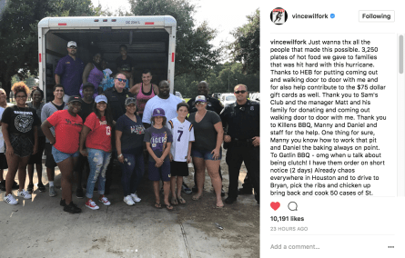 But in true Big Vince fashion, Wilfork knew he could do more good by helping out down in Texas after that sonofabitch Harvey did its best to smash Houston.