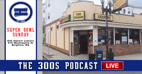The 300s Podcast will be LIVE at Oak Square Liquors in Brighton on Super Bowl Sunday from 1-3 pm. Come watch the guys make outlandish claims, SB predictions, and win some free swag!