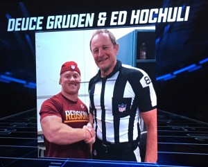 Look at that picture! Just solar eclipsing the human gun show himself, Ed Hochuli. Incredible. I don’t know how I missed this, but the NFL is just littered with Grudens and last night we got all 3 on one screen.