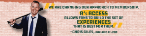 SFGate – The A’s, perennially near the bottom in major-league attendance, are getting creative about selling tickets for next season. They scrapped their traditional season-ticket format and are introducing a more flexible system in which fans will have a variety of options at every home game.It’s called A’s Access, and memberships will go on sale at 9 a.m. Friday. “A’s Access is the first program of its kind,” COO Chris Giles said. “From access to every game to special member concessions pricing, we’re focused on maximizing the value proposition for members. We are inviting our fans to truly become members of the A’s.”