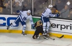 There has also been some questionable officiating, which actually went both ways for the B’s last night. They dodged a bullet when the refs called a goal back after replay showed the Leafs player basically punting Tuukka’s blocker out of the crease. But then they got hosed late in the game after they’d already pulled the goalie to get the extra man and the refs swallowed their whistles on a clear interference. I still don’t understand that.