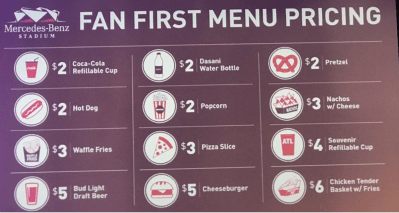 $5 beers? $2 refillable cokes? $2 hot dogs? In this day and age of greedy asshole billionaire owners pinching every penny out of their franchises though I have to ask….what are you up to Arthur Blank? What’s the catch? Do I have to wear my 1994 Starter jacket to redeem these throwback prices?