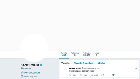 He’s absolutely gone full Kanye, which is the best Kanye. Just look at his Twitter profile, cover, and most recent tweet.